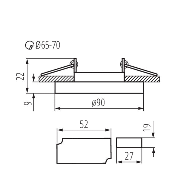 | Round | Ø90 mm | Ø65–70 mm | 22 mm |