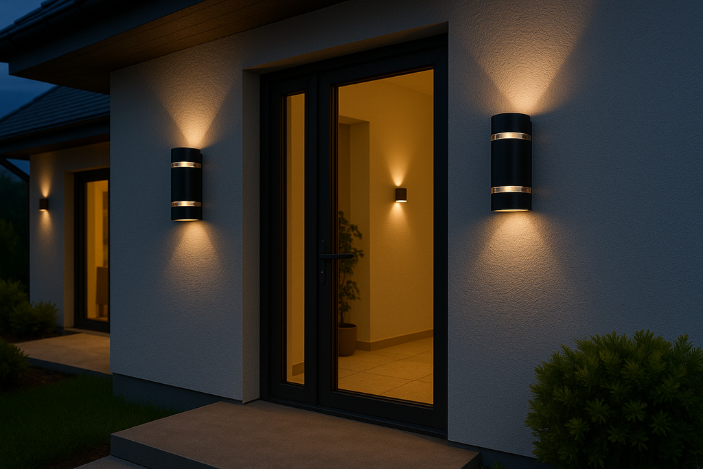 Elevate kerb appeal and visibility with designer up down wall lights. The Kanlux ZEW throws clean light beams both upward and downward to frame entrances, patios and pathways.