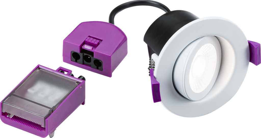 - 230V direct to fixture with loop in-loop out first and second fix connectors